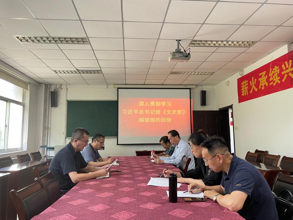 6月16日下午,ylzzcom永利总站组织召开《深入贯彻学习习近平总书记给< 文史哲>编辑部的回信》专题会议,全面深刻理解习近平总书记对于弘扬中华文明、繁荣学术研究方面的重要指示精神。副经理吕承超主持会议,经理李勋来及教师代表参与学习。